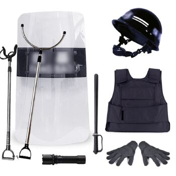 防暴盾牌,防暴棍,防割手套,防刺服,防暴勤务头盔,防暴钢叉,防暴脚叉,强光手电筒,各*1