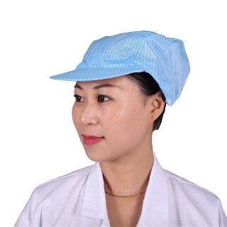工作帽是一块较大圆形的帽片组成,外口收有皱裥,下接一圈帽边,并用抽带或松紧带收紧。主要供纺织厂、机械厂等女工在车间操作时使用,它既能预防头发、辫子等不被转动的电动机皮带或机器的卷入,造成事故,又能保护戴用者本身的头发不受灰尘等弄脏,故在戴用时必须将头发全部罩去。