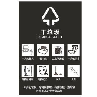 12G7001 | - | 1 个 | 25317 | 干垃圾 | 不干胶 | 18 | 27 | 黑白色 | 打孔或粘贴 |