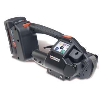 电动打包机是指将打包带进行电动束紧、摩擦作扣、自动切带的捆扎方式的一种捆扎机械。将塑钢带或塑料打包带,从上往下缠绕捆包物体一圈后,将打包带接头处放入机器工作槽内,由电机带动束紧轮,将打包带束紧,通过摩擦作扣的方式将带粘接,最后自动进行切带。