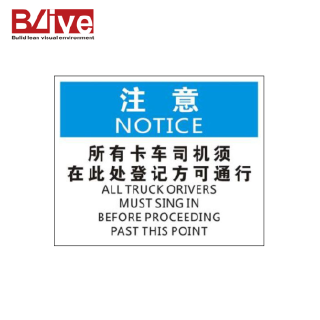 14B4400 | - | 1 张/包 | BL-PP-32820 | 所有卡车司机须在此处登记方可通过 | 工程塑料 | 25 | 31.5 | 打孔或粘贴 |